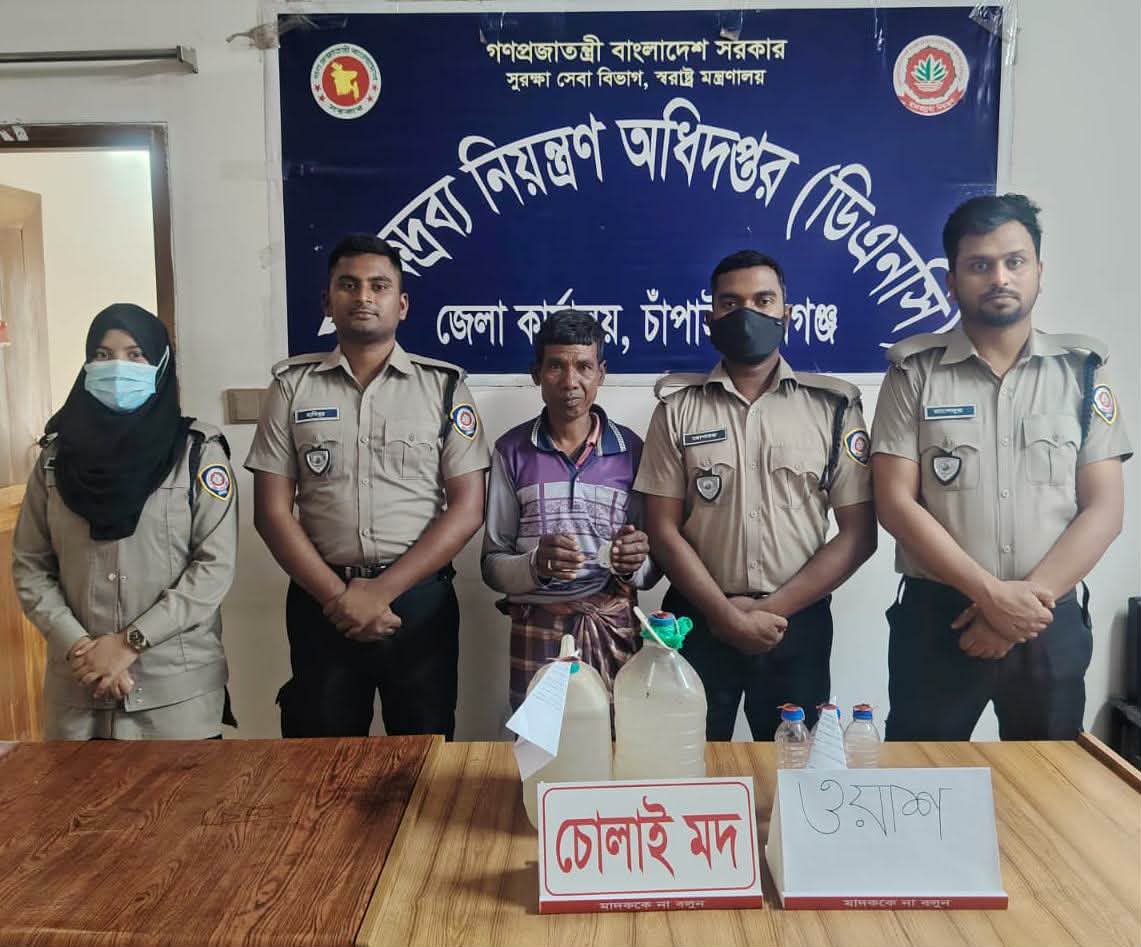 গোমস্তাপুরে ডিএনসি’র অভিযান: ১০০ লিটার ওয়াশ ও চোলাইমদসহ মাদক ব্যবসায়ী গ্রেফতার