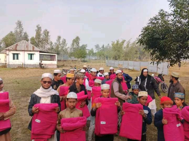 শীতের কনকনে ঠান্ডায় মানবিক উদ্যোগ মাদারকুড়ি গোরস্থান নূরানী হাফিজিয়া মাদ্রাসায় অসহায়দের মাঝে কম্বল বিতরণ