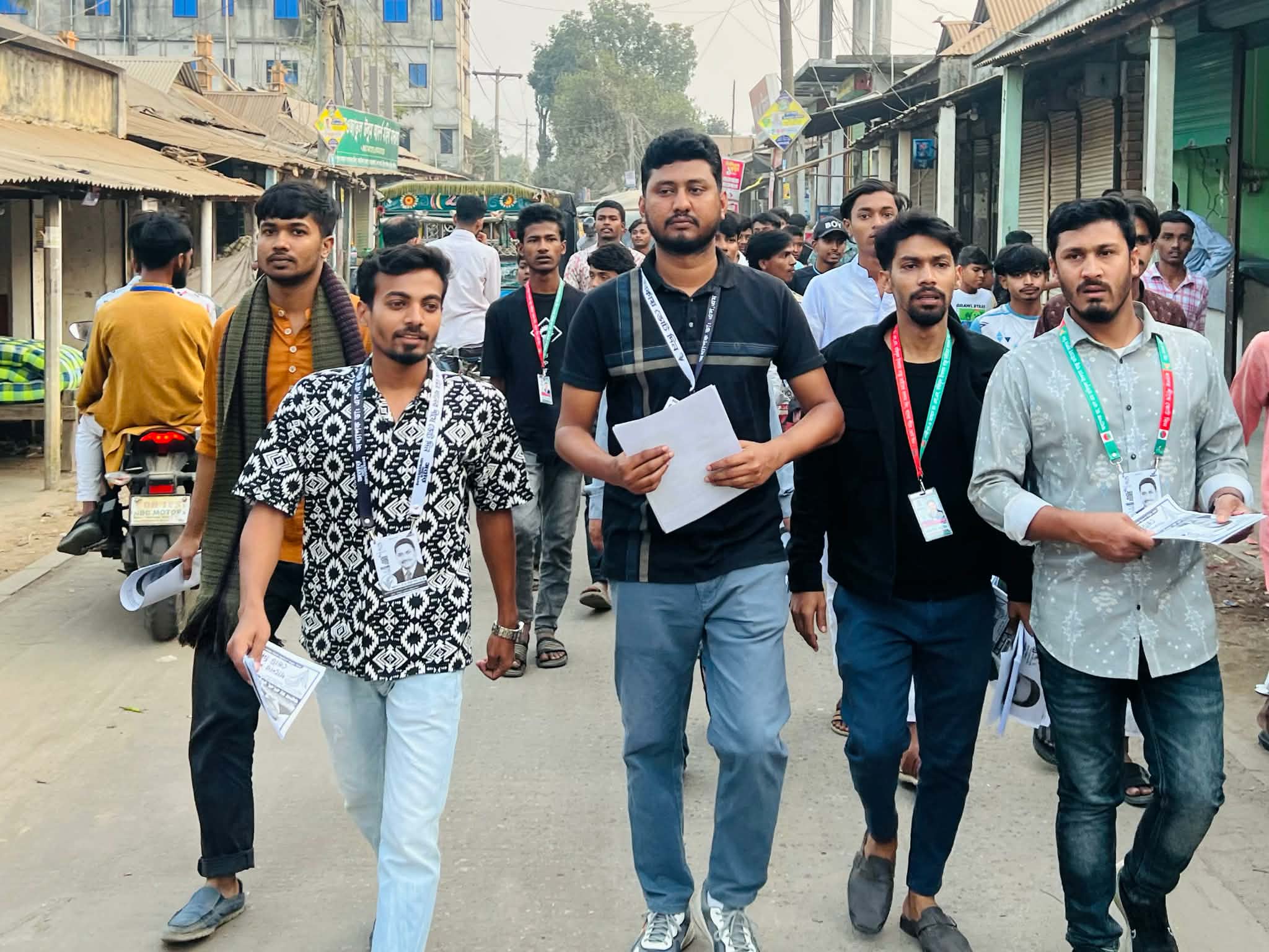 শ্রীপুর পৌর ৯ নং ওয়ার্ডে ধানের শীষের পক্ষে ছাত্রদলের গণসংযোগ ও লিফলেট বিতরণ