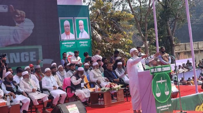 মাহিদুল ইসলাম ফরহাদ চাঁপাইনবাবগঞ্জ জেলা প্রতিনিধি বাংলাদেশ জামায়াতে ইসলামীর মনোনীত প্রার্থী ও ১১ দলীয় নির্বাচনী ঐক্য সমর্থিত চাঁপাইনবাবগঞ্জের তিনটি আসনের সংসদ সদস্য প্রার্থীদের সমর্থনে বিশাল নির্বাচনী জনসভা অনুষ্ঠিত হয়েছে। (৫